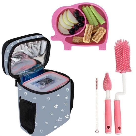 BUFFER® Deprem Çocuk Bebek Bakım Seti 4 Bakım Çantası+Mama Tabağı+ Silikon Biberon Temizleme Fırçası