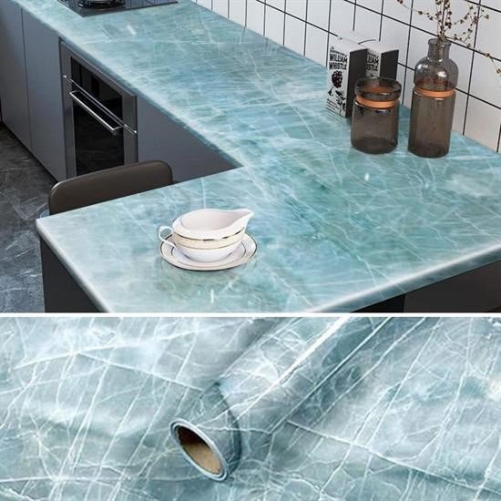 BUFFER® Mermer Desenli Masa Tezgah Mutfak Su Geçirmez Yapışkanlı Folyo Sticker Mavi 5×0,6m