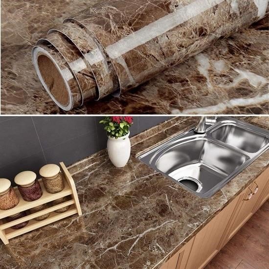 BUFFER® Mermer Desenli Masa Tezgah Mutfak Su Geçirmez Yapışkanlı Folyo Sticker Kahverengi 5×0,6m