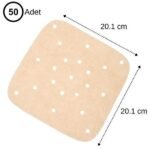 50 Adet Air Fryer Pişirme Kağıdı Tek Kullanımlık Hava Fritöz Yağ Geçirmez Yapışmaz Gıda Pişirme Kağıdı Delikli Kare Model