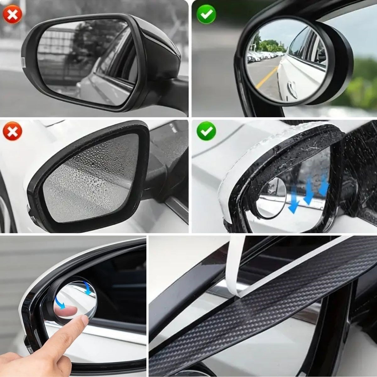 Aracınızın yan aynalarını korumak için tasarlanmış karbon fiber görünümlü yağmur koruyucular, estetik ve işlevselliği bir araya getiriyor. Yağmur, kar ve su damlacıklarının yan aynalarda oluşturduğu görüş problemlerine son vererek güvenli bir sürüş deneyimi sunar.