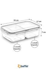 BUFFER® 2 Bölmeli Kilitli Kapaklı 1+1 Litre Erzak Saklama Kabı Diyet Saklama Kabı Taşınabilir Beslenme Kabı