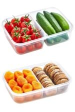 BUFFER® 2 Bölmeli Kilitli Kapaklı 1 Litre Erzak Saklama Kabı Diyet Saklama Kabı Taşınabilir Beslenme Kabı