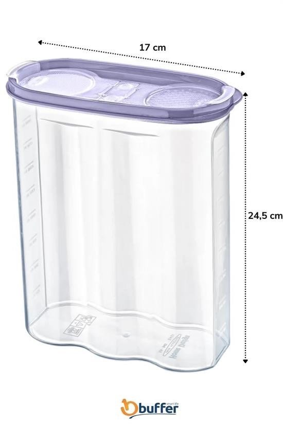 BUFFER® 2 Kapaklı Ölçekli Erzak Kuru Gıda Saklama Kutusu Kabı 2,4 Litre-SA940