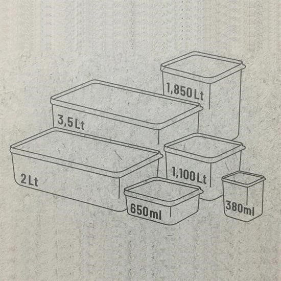Ölçüler: 1850 ml 1100 ml , 3,5 lt ,2 lt, 650ml ve 380 ml ölçülerinde geniş seçenek yelpazesine sahiptir
