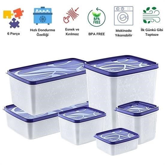 6 Parça Hızlı Dondurabilme Özellikli Saklama kapları derin dondurucuya uygundur, bulaşık makinesinde rahatça yıkanabilir özelliktedir