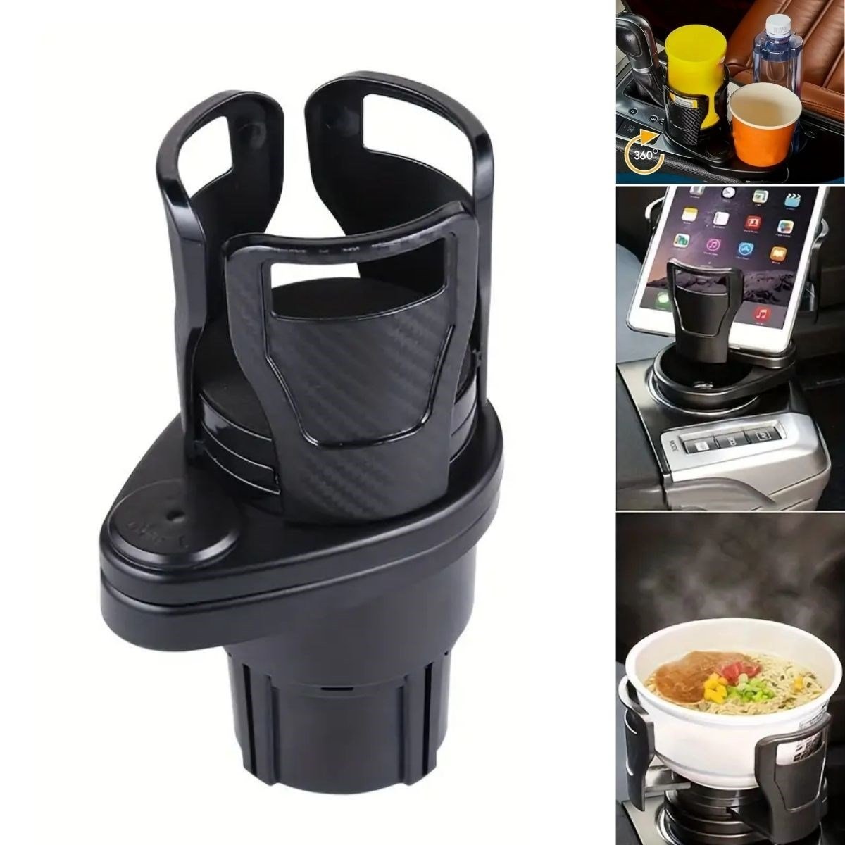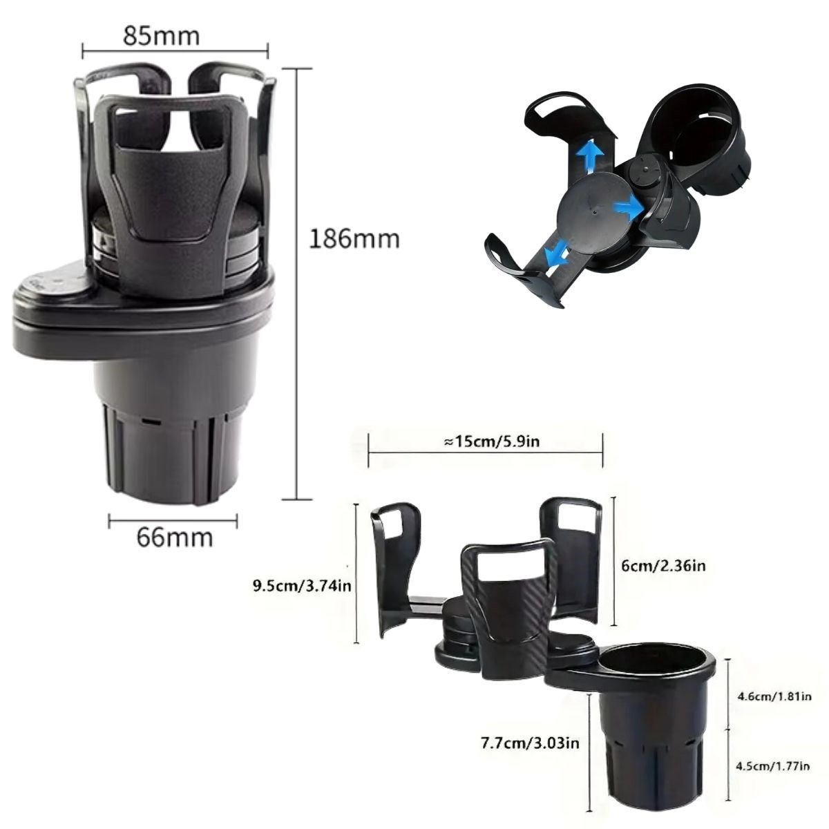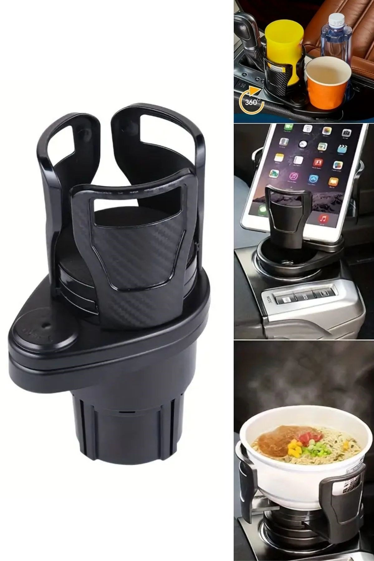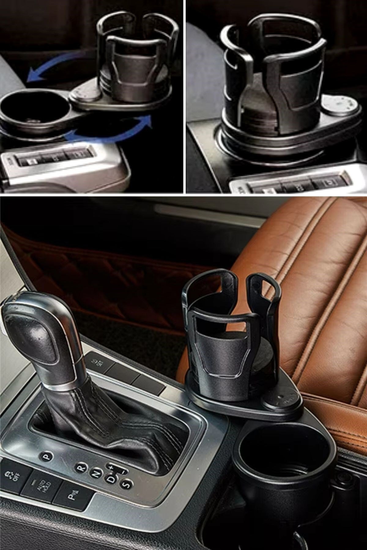 BUFFER® Araç İçi 360 Derece Dönen 2’li Bardaklıklı Açılarak Ayarlanabilir Bardak Tutucu Aparat