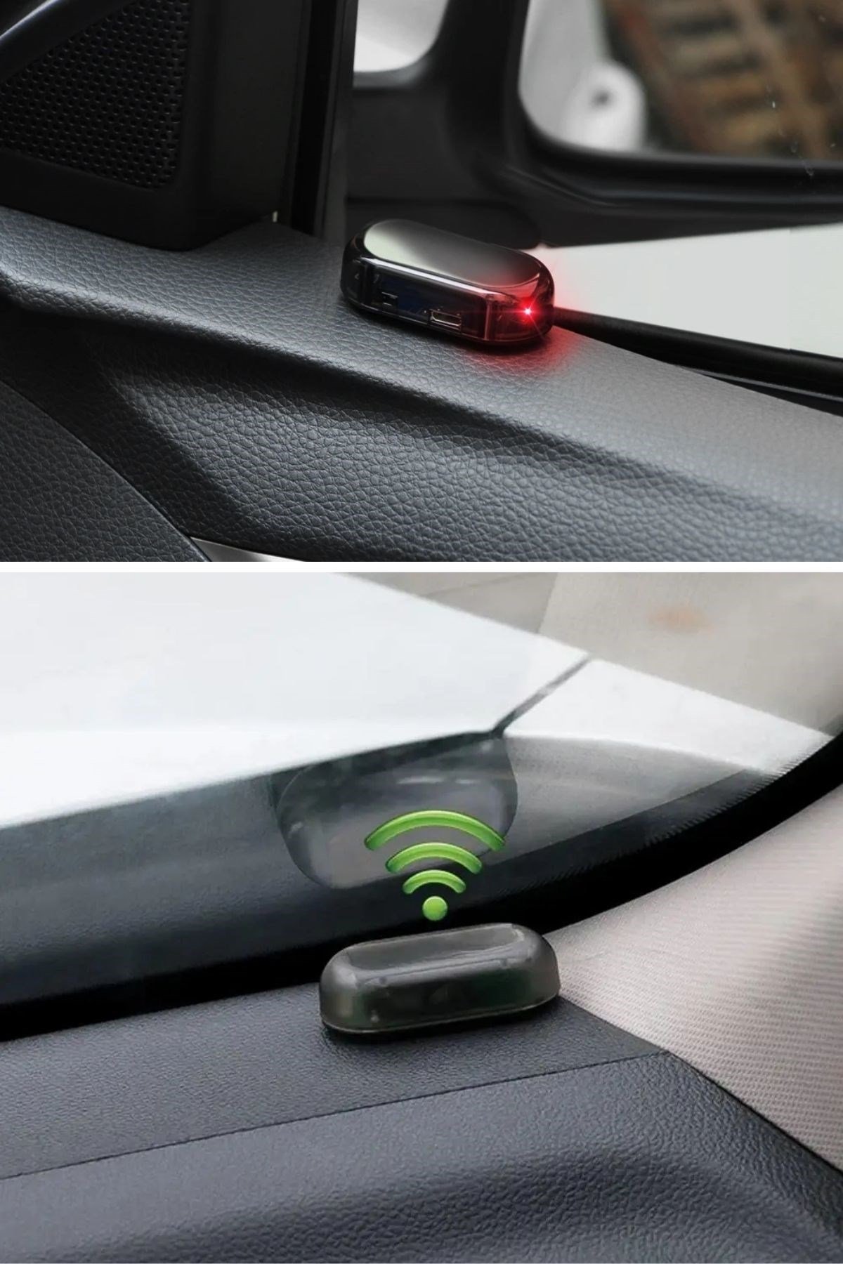 BUFFER®  Araç İçin Caydırıcı Solar Enerji İle Şarj Olan  Güçlü Yapışkanlı Işıklı Plastik Mini Sahte Alarm