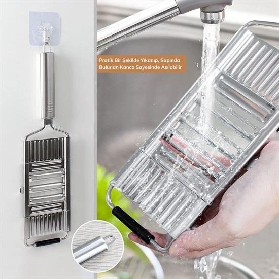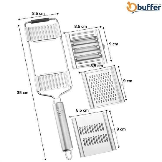 BUFFER® Ayarlanabilir 3 Farklı Başlıklı Tutmalı Kaydırmaz Taban Paslanmaz Çelik Sebze Dilimleyici Peynir Rendeleyici Aparat