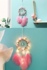 El Yapımı Kuş Tüyü Ve Led Işıklı Düş Kapanının ucundaki kuş tüyleri ve led aydınlatması ile dekorasyonunuzu tamamlayacak parçalardan olacaktır