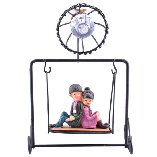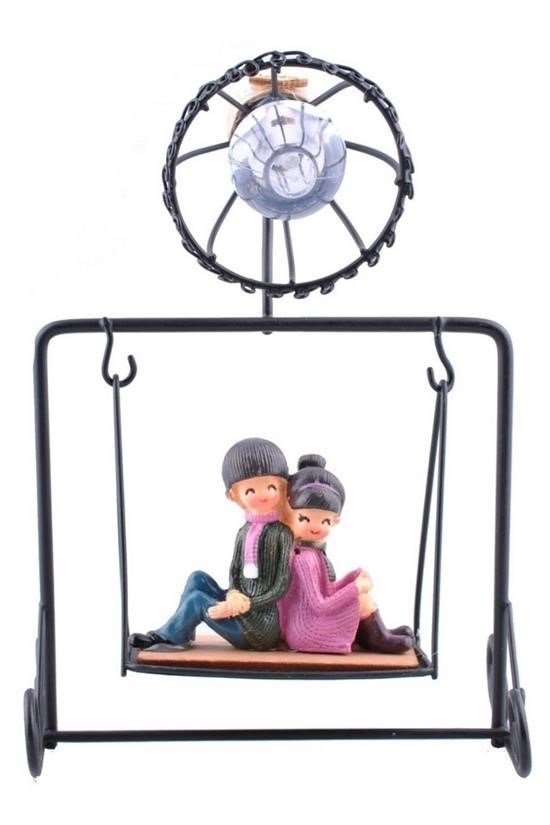 BUFFER® Işıklı Salıncakta Romantk Genç Aşıklar Dekoratif Ahşap Biblo