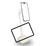 Masa Üstü Tablet ve Telefon Tutucu Plastik Aparat, Beyaz renkli şık tasarımı ile hem tablet hem de telefonlarınız için ideal bir stand çözümüdür. Çalışma masasında, mutfakta, yatak odasında veya ofiste, cihazlarınızı dik ya da yatay konumda sabit tutarak kullanım kolaylığı sağlar.
