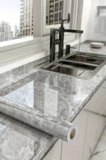 Atina Grisi mermer deseniyle yaşam alanlarınıza modern ve zarif bir hava katmak için ideal olan bu folyo, dekorasyona şıklık katarken ekonomik bir yenileme çözümü sunar.