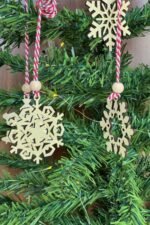 Yeni yılın büyüleyici atmosferini evinize taşıyan 6 Parça Kırmızı Beyaz İpli Kar Tanesi Model Ahşap Yılbaşı Ağaç Süsü, doğal ahşap dokusu ve zarif tasarımıyla yılbaşı dekorasyonunuzun vazgeçilmezi olacak.