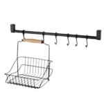 Ahşap kulplu retro mutfak düzenleyici askılı sepet