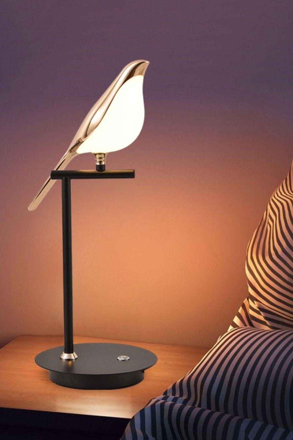 BUFFER® Saksağan Kuş Modeli Tekli Dokunmatik Ayarlanabilir Aydınlatma Masa Üstü Gece Lambası Göz Korumalı Abajur