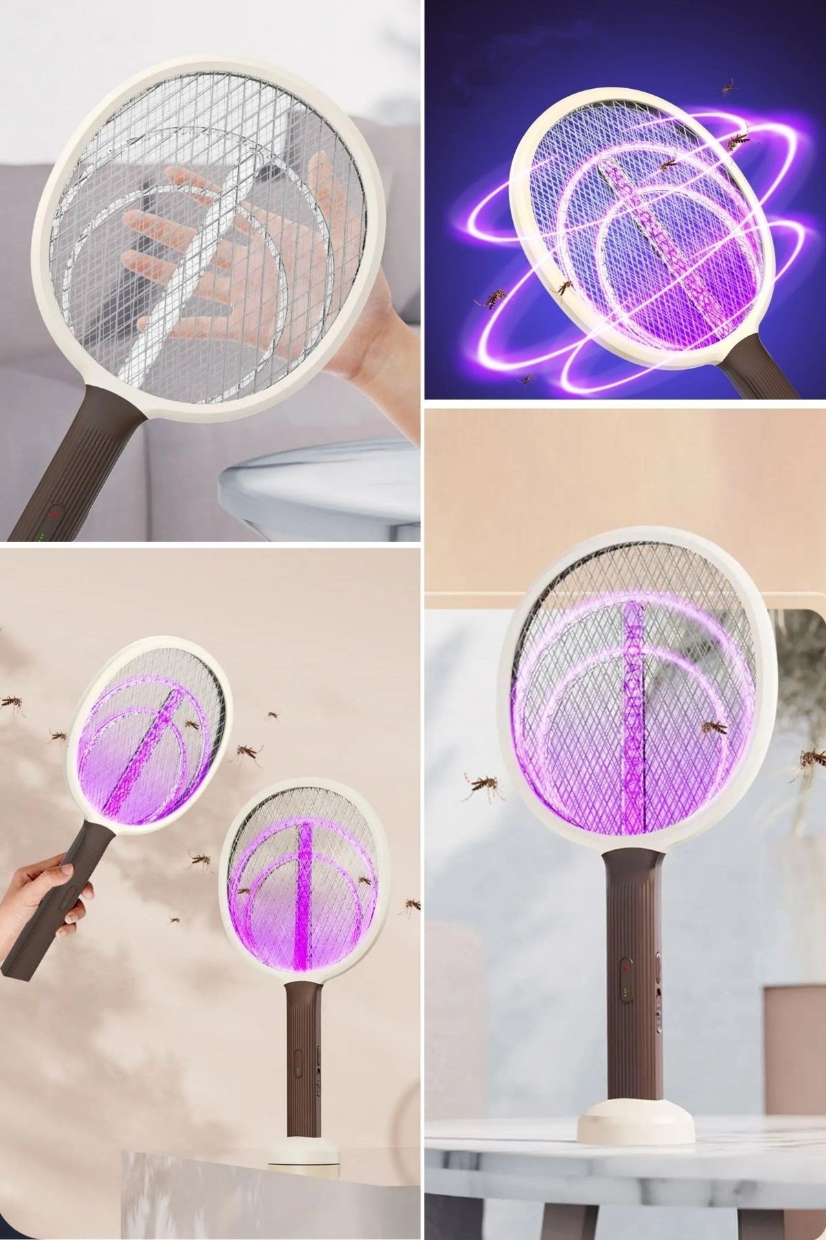 Şarjlı Sinek Öldürücü Masaüstü Standlı, Mor Işık 43cm Sinek Kovucu Raket, sinekler ve diğer uçan haşerelerle mücadele etmenin en etkili ve pratik yolunu sunar. Bu çok işlevli cihaz, hem bir sinek öldürücü raket hem de masa üstü standı ile kullanabileceğiniz bir haşere kovucu olarak tasarlanmıştır.