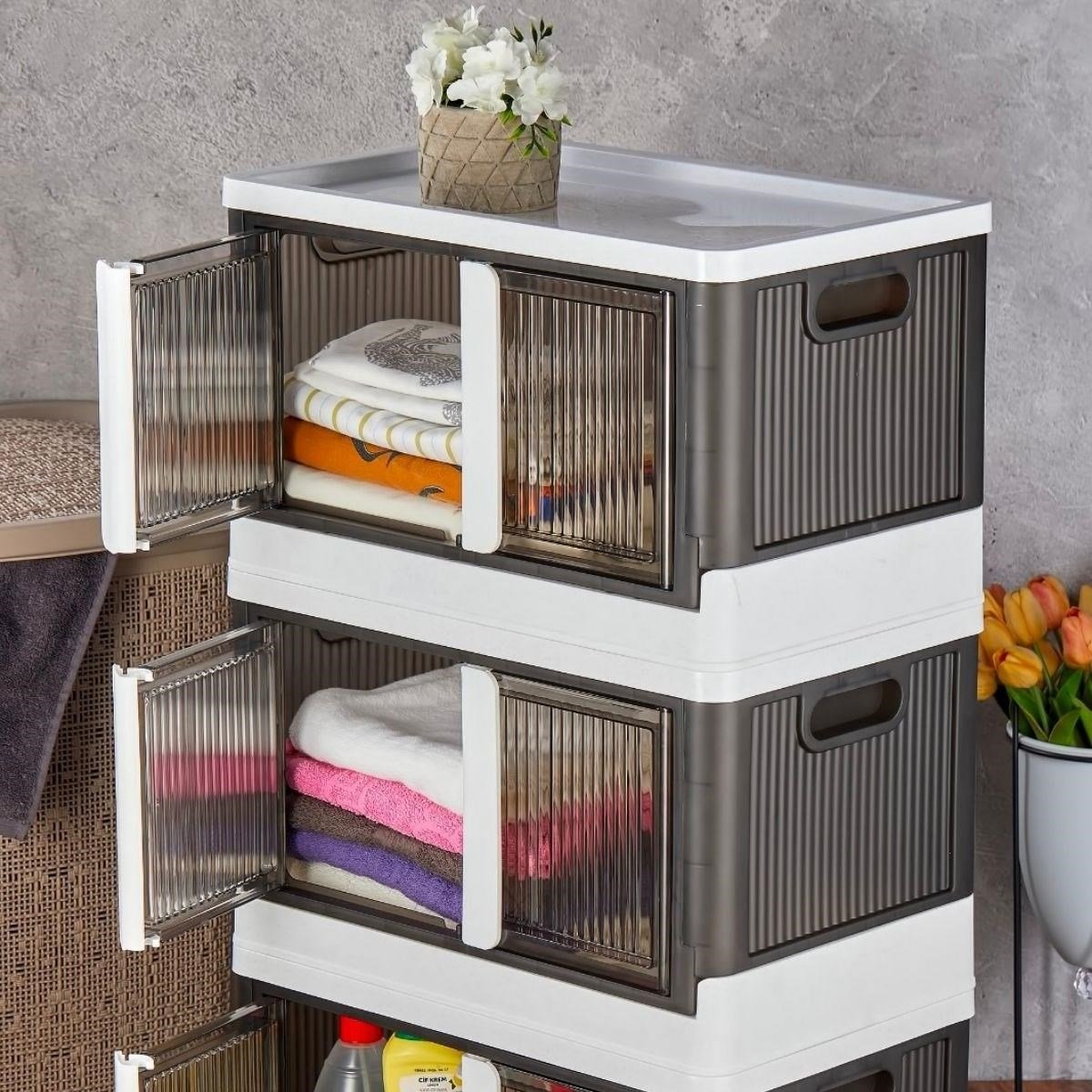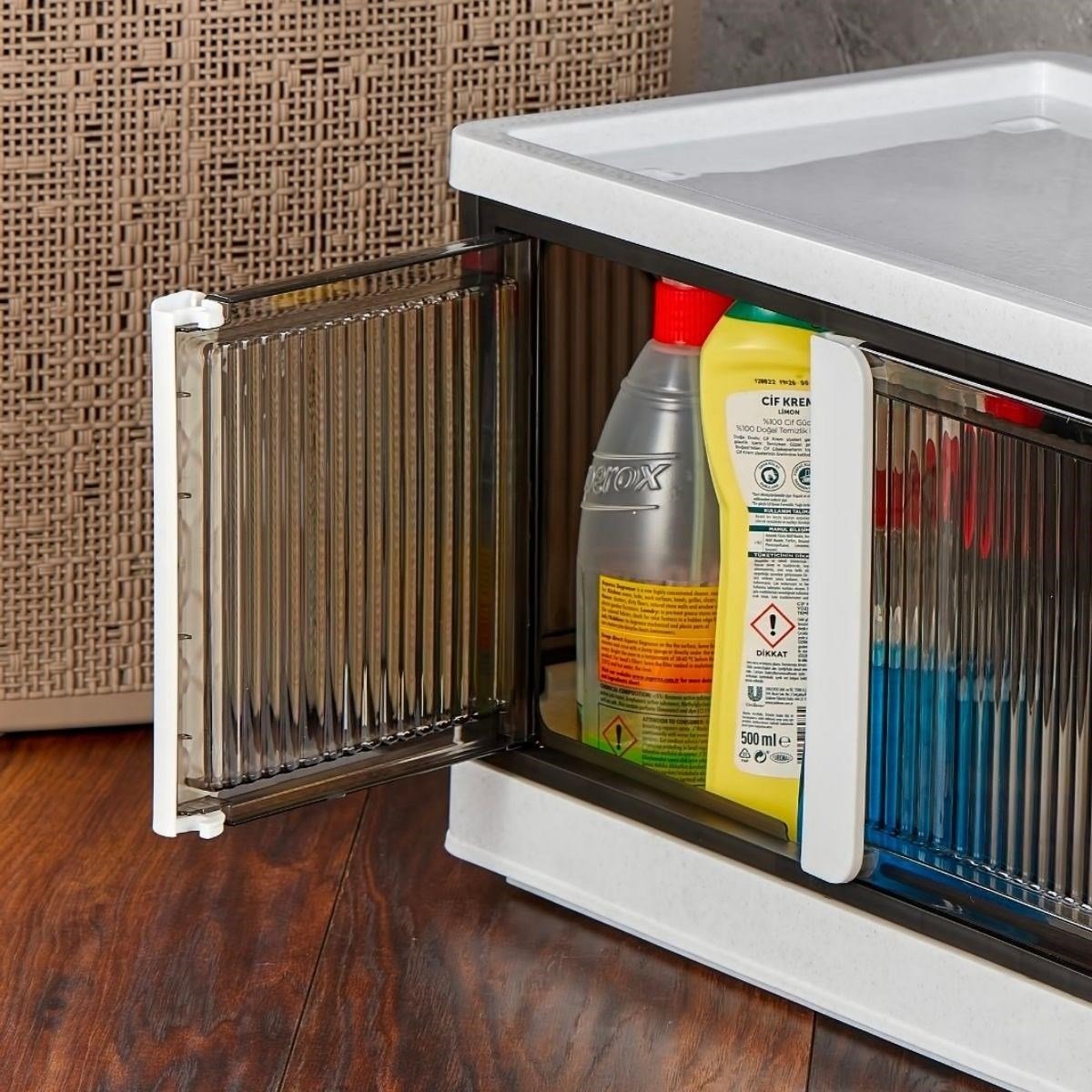 BUFFER® Tek Katlı Çift Kapaklı Demonte Mutfak ve Banyo Düzenleyici Plastik Raf-Antrasit