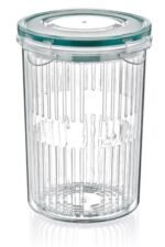 Zeytinlerinizi, küçük boy domates ve salatalıklarınızı kolaylıkla yıkayıp suyunu süzebileceğiniz, kovası ile sonrasında saklamak üzere içine yerleştirebileceğiniz saklama kabı çok kullanışlı ve her mutfakta bulunması gereken parçalardan