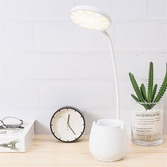 BUFFER®Kalemlikli Telefon Tutacaklı Şarjlı Dokunmatik 3 Mod Esnek Başlıklı Dimmerli LED Masa Lambası