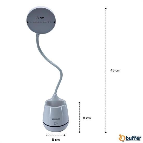 BUFFER® Kalemlikli ve Telefon Tutacaklı Şarjlı Dokunmatik 3 Farklı Modla Yanan Esnek Başlıklı Dimmerli LED Masa Lambası